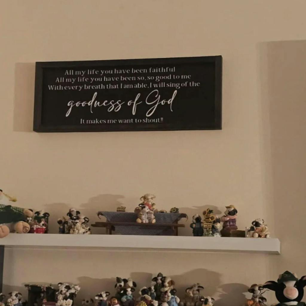 Elevate your home decor with our exquisite Goodness Of God Sign, a unique blend of rustic charm and personalized artistry. Crafted with love and attention to detail, this handcrafted masterpiece is a testament to your individuality and style. Whether you're looking to enhance your own living space or searching for the perfect gift, our custom wood sign is a stunning choice.